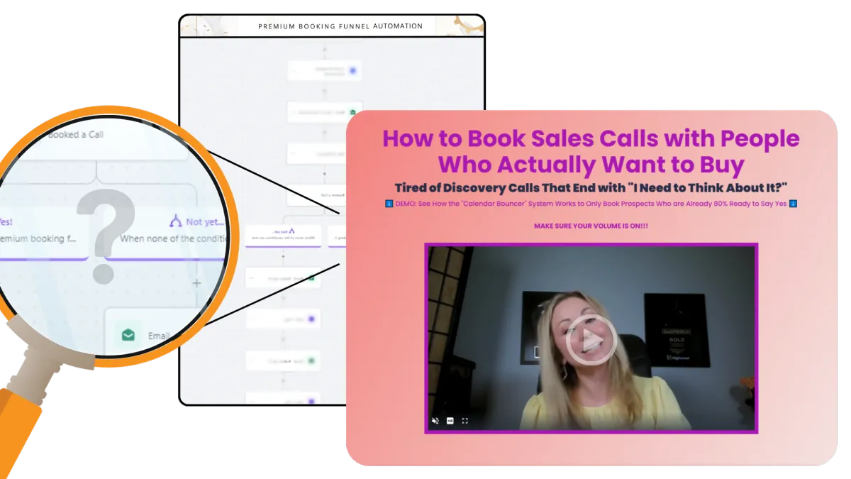 What's included: Premium Booking Funnel Video Page with Timed Opt In, Hidden Timers and Follow Ups Based on Video Views. Application pages, pre-call videos, qualification sequences, booking automations, pre-call nurture campaigns
